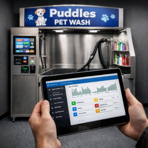 This is not a low-tech, hands-on operation that requires you to be physically present. Each Puddles Petwash system includes a color touchscreen and remote management capabilities that let you monitor sales, product usage, and system performance from anywhere. You can run wash cycles, adjust settings, and diagnose issues remotely without opening the unit. Optional alerting notifies you by text if an issue occurs, allowing faster response and minimal downtime.